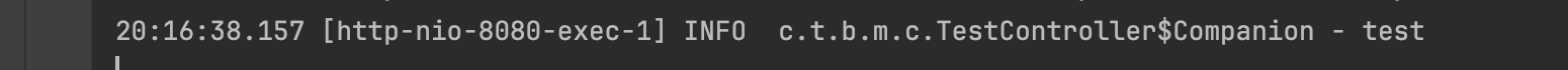 이렇게 시작을 하고 나서 http://localhost:8080/test에 요청을 보내면 아래와 같이 로그가 남습니다