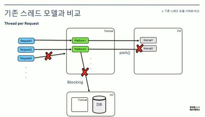 스레드풀을 사용할 정도로 비용이 기존의 자바 스레드의 생성 비용이 큽니다.