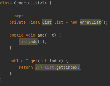 Generic을 이용해 타입 지정을 했지만, 실제 추론 가능한 타입은 Object일 때 사용됩니다