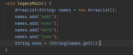 실제로 위의 코드는 컴파일이 됩니다 하지만, 런타임에 ClassCastException이 발생하면서 실행에 실패하게 됩니다